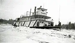 Steamer Robert Young trapped in ice in the Willamette River near Oregon City, January 1930.