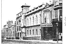 The church was founded by Daniel Smith in 1856 who carried out much evangelical work around the town.[3] A Gothic Revival-style building on the site was the congregation's original chapel. The Rev. C. New, one of the most important figures in Hastings' Congregationalist community at the time, was instrumental in getting a new church funded and built after the congregation had out-grown the original building and extensive repairs were required in any case. The construction contract was put out to tender; bids ranged from £6,526 to £8,240, and the chosen contractor was John Howell with a bid of £7,090.[4] In order to permit the expansion, the property next-door to the church had also been purchased.