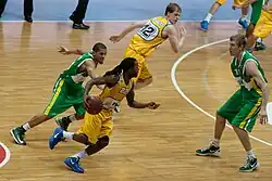Smeulders (center) with Oldenburg, playing against BC Khimik in 2013