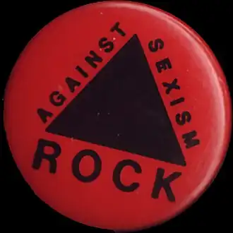 ![]() Rock Against Sexism badge made by RAS Boston - 1980s | |