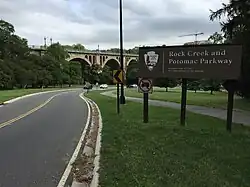 The Rock Creek and Potomac Parkway, informally called the Rock Creek Parkway, is a parkway maintained by the National Park Service as part of Rock Creek Park in Washington, D.C. It runs next to the Potomac River and Rock Creek in a generally north–south direction, carrying four lanes of traffic from the Lincoln Memorial and Arlington Memorial Bridge north to a junction with Beach Drive near Connecticut Avenue at Calvert Street, N.W., just south of the National Zoological Park. During rush hours, the parkway is converted to one-way traffic corresponding to the peak direction of travel: southbound in the morning and northbound in the afternoon.