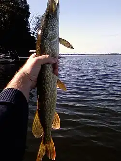 Northern Pike caught on Rock Lake and view of lake from northeast to south.