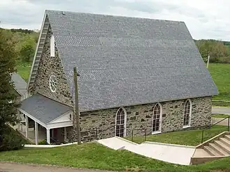 Rock United Presbyterian Church is a historic Presbyterian church located at Elkton, Cecil County, Maryland. It is a rectangular building of uncoursed rubble stone construction, three bays wide by three deep, with a steeply pitched slate-clad gable roof. It was originally constructed in 1761, and remodeled to its current Victorian Gothic influenced appearance in 1872 and 1900. Also on the property is a 1+1⁄2-story, stone Session House originally constructed in 1762 and a modern white stucco Church House constructed in 1953. The church is significant due to its association with the early Scotch-Irish immigrants to Maryland.[2]