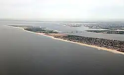 The Rockaway Peninsula, commonly referred to as The Rockaways or Rockaway, is a peninsula at the southern edge of the New York City borough of Queens on Long Island, New York. Relatively isolated from Manhattan and other more urban parts of the city, Rockaway became a popular summer retreat in the 1830s. It has since become a mixture of lower, middle, and upper-class neighborhoods. In the 2010s, it became one of the city's most quickly gentrifying areas.