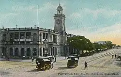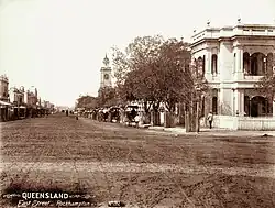 Strong shaking was felt in Rockhampton when the "Great Queensland Earthquake of 1918" occurred on 7 June 1918. The earthquake was felt from Mackay in the north, to Grafton in New South Wales, and west to Charleville. Estimated to have reached a 6.0 magnitude, the earthquake caused some damage to buildings including chimney stacks crumbling, plaster being dislodged from walls and ceilings, water tanks bursting and trees being uprooted. Houses and buildings experienced considerable swaying with crockery smashing on the floor and pictures falling off walls.[36][37] The 1918 earthquake remains as the largest to have ever hit Queensland since European settlement.[38][39]