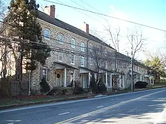 Rockland Historic District is a national historic district at Brooklandville, Baltimore County, Maryland, United States. It is located at the intersection of Old Court Road and Falls Road, where Old Court turns into Ruxton Road. There are 15 buildings in the area, including a general store, tavern, the shell of a blacksmith shop, a carriage house, several log buildings, a group of stone rowhouses, the Rockland Grist Mill, and an 18th-century dwelling. It is one of the surviving examples of a small, quiet, sylvan community of the early 19th century.[2]