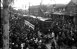 On August 1, 1947, small Peter Witt streetcars replaced the TRC streetcars. On September 7, 1952, PCC streetcars replaced the Peter Witts.[2]