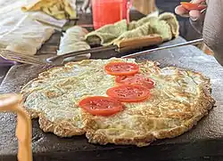 Rolex is a popular street food originating from Uganda, consisting of a vegetable omelette wrapped in chapati (a type of flatbread).[1] The dish is considered a national treasure and cultural symbol of Uganda, representing the fusion of South Asian culinary influences with local ingredients and preferences.[2] It is prepared by combining an egg omelette and vegetables wrapped in a chapati. This single-portion dish is quick to prepare, and can be eaten at any time of the day, from breakfast to a lunch or supper meal or snack.[3][4]