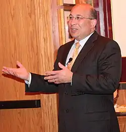 Ronald G. Insana (born March 31, 1961)[1] is an American finance reporter, author and former hedge fund manager. He presents the Market Score Board Report with Ron Insana radio show, syndicated by Compass, and is a senior analyst and commentator at CNBC. Insana was the Managing Director of Insana Capital Partners from inception to dissolution. He was the anchor of CNBC's Street Signs,[2] which aired on weekdays during stock market hours. Until December 5, 2003, he and Sue Herera co-anchored CNBC's then flagship nightly financial news program, Business Center.