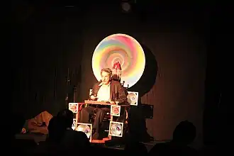 The final performance of Tomorrow! at the Steve Allen Theater on September 30, 2017. Pictured are the host Ron Lynch and frequent guest, magician John Carney-