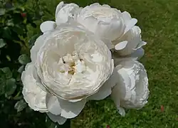 Rosa 'William and Catherine' is a white shrub rose introduced into the United Kingdom in 2011.[1] It is a cultivar developed by the British rose breeder, David C. H. Austin. 'William and Catherine' was named in celebration of the wedding of Prince William and Catherine Middleton.[1] The rose is described as having "white, shallowly cupped, full petalled" blooms and a moderate to strong fragrance of pure myrrh.[2] The flowers develop from creamy orange buds and reach an average diameter of 8 centimetres (3.1 in), while the shrub reaches a height of 125 centimetres (49 in) at a width of 90 centimetres (35 in).[3][4]