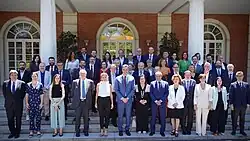 Presentation of the business PERTE at the Palace of Moncloa (Madrid 2022). In the front row, José Luis Escrivá, Ione Belarra, Yolanda Díaz, Pedro Sánchez, Patro Contreras, Juan Antonio Pedreño, Rosa Lavín, Luis Planas, Isabel Rodríguez and Félix Bolaños.