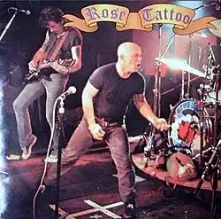 Anderson's one-time bandmate, bass guitarist Geordie Leach was recruited to replace Turner and record their self-titled debut LP, Rose Tattoo, which reached the top 40 on the Australian Kent Music Report Albums Chart in November 1978.[6] The album, produced by Vanda & Young, was released in some markets as Rock N' Roll Outlaw from their second Australian single, "Rock N' Roll Outlaw" which did not reach the top 50.[2][6] Leach left the band in May 1979 to be replaced in October by guitarist Lobby Loyde (Purple Hearts, Wild Cherries). The band toured the United States, recorded an unreleased album in Los Angeles,[4] and then toured Europe (including UK), but by September Loyde had left and Leach had returned.[2]