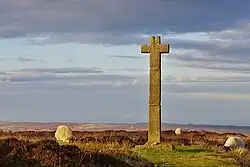 Old Ralph cross is a monolithic wayside cross of hard gritstone that stands about 6 feet tall, possibly 11th century. The cross is a Grade II* listed building.[15] The cross is located on Ledging Hill the highest point on Blakey Ridge (OS ref: NZ 674 019).[16][n]