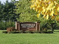 1. ^ "Rosedale Bible College". The Association of Biblical Higher Education. 1 November 2018. Retrieved 18 October 2021.