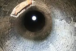 The chimney is a brick structure with an outer skin of red facebrick. It comprises a base and a tapering stack. The base is expressed as a plinth, square in plan and approximately 8.6 metres (28 ft) high. The stack, approximately 31 metres (102 ft) high, flares out at the top to take a plain, splayed, concrete crown.[1]