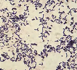 Rothia dentocariosa is a species of Gram-positive, round- to rod-shaped bacteria that is part of the normal community of microbes residing in the mouth and respiratory tract.[1]