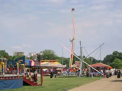 Current events, including George Irvin's Fun Fair (occurring every May 1 – 10),[9] Zippos Circus, and Eid Prayer in the Park, usually take place in the open space to the south of the park rather than in the main territory.