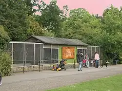 After an approach by Willesden & District Caged Birds Society in 1955, the Council approved the establishment of an aviary. It was erected the next year. Although successfully fox-proof, it has been a target for thieves. Budgerigars worth £50 were stolen in the summer of 1963, and since then the security of the building was improved. Among the occupants are zebra finches, budgerigars, cockatiels, canaries, and golden pheasants.[3][4]