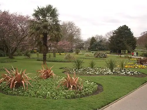 The Local Board allowed him a sum of £9,000 for setting out the park.[3][4] He inserted 5 miles of drainage under the park and planted an additional 14,500 trees and shrubs.[1][3][4][6] The work, though, was slow, because Robson chose to use local civilians instead of main contractors.