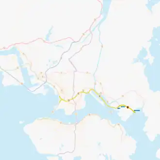 When completed, it will continue from its current terminus at the Lam Tin Interchange through new underground tunnels. First, it will continue in an unnamed submarine tunnel towards the Kai Tak Development Area, intersecting with Route 5 on the way. It will then burrow across Kowloon as part of a new set of underground tunnels forming the Central Kowloon Route till a planned interchange with Route 3 at the West Kowloon Highway near Yau Ma Tei. It was marked as a high-priority trunk route in the Third Comprehensive Transport Study.[1]