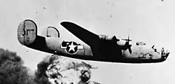 The then-current RAF fin flashes were also adopted for USAAF aircraft operating alongside British and Commonwealth forces in the Mediterranean theatre in 1942, appearing on US Curtiss P-40 Warhawk fighters and North American B-25 Mitchell bombers, as well as on USAAF Consolidated B-24 Liberators flying from North Africa on attacks such as 1943's Operation Tidal Wave.