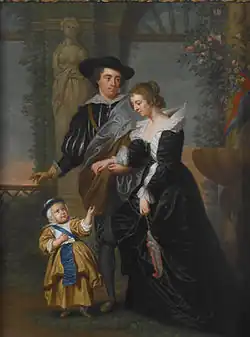 Charles Churchill (1720-1812) was the son of Lieutenant-General Charles Churchill (1679-1745) and Anne Oldfield.[7] In his youth he joined the military and became a Colonel. He then resigned and became a Member of Parliament. He was closely associated with the Walpole family and in 1846 married Lady Mary (sometimes called Maria) Walpole the favourite daughter of Sir Robert Walpole. The pair were frequent visitors to Strawberry Hill House which was the residence of Horace Walpole, Mary's half-brother.[8] A painting that was hanging in the Strawberry Hill house depicting the couple and their eldest son Charles Churchill (1747-1786) is shown. Lady Mary became housekeeper at the nearby Windsor Castle and held this position for over twenty years.
