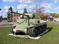 Sherman M4A2E8 (76 mm) HVSS tank displayed near the Royal Canadian Regiment Military Museum