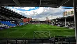 The current ground was baptized in 1939 with a match Sporting-Union du Centre and it was located near the coal mine named Mambourg. In 1985 the stadium was slightly modernized as the club had qualified for the first division. It was then heavily renewed in the late 1990s in view of the 2000 European Football Championship. The name changed on 24 May 1999 from Stade du Mambourg to Stade du Pays de Charleroi. During the tournament, the full capacity of the stadium was up to 30,000 seats. The Stade du Pays de Charleroi hosted notably the match between Germany and England. The highest stand was eventually reduced and the capacity is now 15,000.[3]