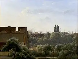 The Royal Mint and the Botanical Garden painted by Vilhelm Kyhn from a window in Charlottenborg in 1862