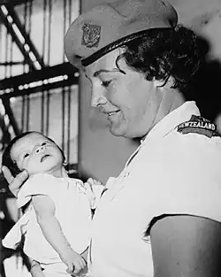 The Royal New Zealand Nursing Corps (RNZNC) is a corps of the New Zealand Army. The corps was initially formed in 1915 from civilian nurses who volunteered for service during World War I, and who were granted honorary officer ranks. A Nursing Reserve had been formed as part of the New Zealand Medical Corps on 14 May 1908.[1] Today, the corps is an officer-only corps that consists of commissioned officers who are employed for their specialist skills and knowledge as registered nurses,[2] the corps works in conjunction with the Royal New Zealand Army Medical Corps and the Royal New Zealand Dental Corps to promote "health and disease prevention" and to provide "care for the wounded and sick".[3] Nursing Officers in the New Zealand Army can be employed broadly in primary health, perioperative, surgical or emergency settings,[2] which can see RNZNC personnel providing health services in a garrison health centre, in a civilian practice, or deployed on operations.[4]