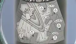 In May 1985, Gainax transferred their operations to a larger studio in Takadanobaba, where the existing staff gathered in friends and acquaintances to help visualize the setting of Royal Space Force.[93] Among those joining the crew at this time were two of the film's most prolific world designers: Takashi Watabe, whose designs would include the train station, rocket factory, and Royal Space Force lecture hall[94] and Yoichi Takizawa, whose contributions included the rocket launch gantry, space capsule simulator, and rocket engine test facility.[95] Yamaga decided the alternate world depicted in the pilot film did not have the kind of different realism he was hoping to achieve in the completed work and started over again, creating a new series of "image board" paintings to visualize the look of Royal Space Force. The total worldbuilding process went on for roughly a year, and was described as a converse process between Yamaga and the team of designers; expressing his ideas into concrete terms, but also bringing their concrete skills to bear toward the expression of abstract ideas.[96] This reciprocal process influenced Yamaga's writing on the film: "My style is not 'I have a story I created, so you help me make it.' Creators come first, and this is a story I created thinking what story those creators would shine at the most."[97]