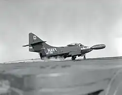 A VF-781 F9F lands on the USS Oriskany in November 1952