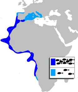 - ^ a b c de Morais, L.; Sylla, M.; Camara, K.; Williams, A.B.; Sidibé, A.; Carpenter, K.E.; Montiero, V.; Lindeman, K.; Nunoo, F.; Quartey, R.; Djiman, R.; Sagna, A. (2015). "Plectorhinchus mediterraneus". IUCN Red List of Threatened Species. 2015: e.T194433A2334878. doi:10.2305/IUCN.UK.2015-4.RLTS.T194433A2334878.en. Retrieved 20 November 2021.