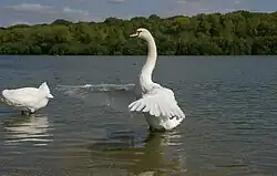 According to the London Borough of Hillingdon, the most common species' of birds found within the woods are mute swan, Canada goose, robin, green woodpecker, jay, nuthatch, lesser spotted woodpecker, greater spotted woodpecker, cuckoo, sparrowhawk, tree creeper, tawny owl, willow tit and woodcock.[20]