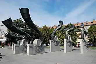 ![]() ![]() ![]() ![]() From top: Monument of the Revolution, Downtown, Monument to a horse, Serbian Orthodox Church of the Holy Ascension of the Lord, One of the two statues of the monument to the plague, Croatian Home, New Orthodox Church | |