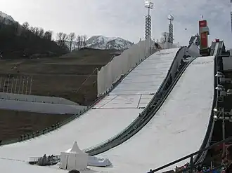 It hosted the ski jumping and the ski jumping part of the Nordic combined event at the 2014 Winter Olympics in Sochi.[1] Two Olympic jumps of K95 (HS102) and K125 (HS140) are constructed for these games with scheduled completion in 2011. Additional hills for youth training of K72, K45 and K25 will be constructed with the Olympic hills. It was first used in 2012.[1]