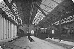 In 1904, Hong Kong Tramways built a tram depot by Russell Street, mainly for tram repair and parking. As the demand for tram service grew, the old Russell Street tram depot could no longer park all the trams Hong Kong Tramways owned. The company decided to expand the Russell Street depot, and at the same time built a temporary tram depot in North Point to ease tram parking problem. In 1951, Hong Kong Tramways finished the renovation of Russell Street depot, renamed it as Sharp Street depot. The North Point temporary tram depot was then closed.[7] Not long after the expansion of the Russell Street tram depot, the Tramway workers resented Hong Kong Tramways for unjustifiable dismissal and break of employment contract, which eventually caused a labour dispute in 1952. In 1989, Lockhart Road market reconstruction completed. Hawkers and Dai Pai Dong on Russell Street all moved into the new Lockhart Road market. The Sharp Street depot (formerly Russell Street depot) was shut down and demolished. All trams were moved to Sai Wan Ho and Whitty Street depot. The site of Russell Street was then reconstructed into Times Square.