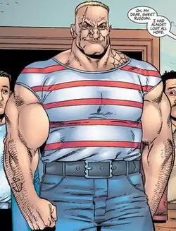 The Russian's remains are recovered by General Kreigkopf, who resurrects him as a cyborg using technology stolen from S.H.I.E.L.D. He is given experimental hormone treatments to stabilize his body, causing him to develop breasts (which he adores) and an implied form of menstruation.[9] To test the Russian's capabilities, Kreigkopf approves his request to return to New York City to kill the Punisher, who the Russian throws off of the Empire State Building. The Punisher is saved by Spider-Man, and in the battle that ensues he wields the superhero as a human shield, and uses his web-shooters to knock the Russian off of the skyscraper. The Russian survives crashing through the street below and being hit by a subway train, and retreats to Kreigkopf's base on Grand Nixon Island.[10] The Russian is repaired, and denied another chance to face the Punisher.[11][12]