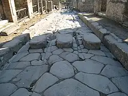 1. ^ The gaps in the pedestrian crossings in Pompeii could give credence or otherwise to this statement, but no relevant studies appear to have been made.
