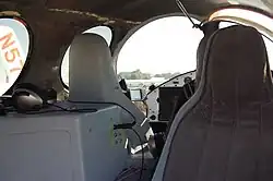 The seemingly stark, unfinished interior of the Rutan Boomerang, as seen at EAA AirVenture 2011. By September 2012 the interior had been refurnished by Oregon Aero[2]
