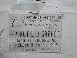 Grande had served in the parish of Aguilares off and on from 1967 to 1977. He was responsible, along with many other Jesuits, for establishing Christian base communities (CEBs, in Spanish) and training "Delegates of the Word" to lead them.[9] Grande spoke against the injustices at the hands of an oppressive government and dedicated his life's work to organizing the impoverished, marginalized rural farmers of El Salvador as they demanded respect for their rights.[10] Local landowners saw the organization of the peasants as a threat to their power.[11]