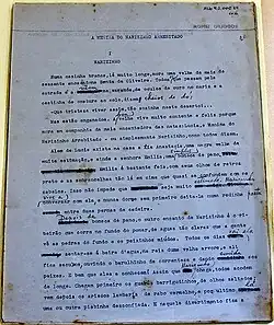 As for the use of certain terms, the researcher notes that Lobato uses them to get closer to the readers of the time, even using a dose of irony and that, if the author didn't specify Aunt Nastacia's ethnicity, her position of equality with Dona Benta would lead readers to understand that she was a white person.[26] And that, by dialoguing with the literary tradition of the time, Lobato causes a rupture, mainly by making Emília, whenever she offends her creator, end up being reprimanded, both by the characters and by the readers.[27] The researcher also notes that the reprimands Emília undergoes make it impossible for her to be the author's main "alter ego".[28] Also, the elements that today are considered racist are an intertextuality with children's literature that has already fallen into oblivion.[29] As for the work Caçadas de Pedrinho, the researcher notes that Lobato uses the term "monkey" in reference to various characters, always when explaining their physical prowess in comparison to the ape (at one point, Narizinho is described in this way after jumping on a slippery rock without falling), not as a derogatory comment.[30]