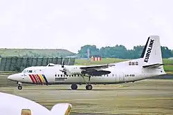 Nine Fokker F27s were bought, four from Trans Australia Airlines for $9.5 million. Services commenced on 17 December 1984 with the first four aircraft under the subbrand Eurolink—operating shorter hauls out of Copenhagen Airport.[7] Initially this included routes to Oslo Airport, Fornebu; Göteborg Landvetter Airport; Haugesund Airport, Karmøy; Kristiansand Airport, Kjevik; Jönköping Airport and Hamburg Airport. The services to Hamburg was by far the busiest, with five to seven daily services.[8] The old aircraft, built between 1967 and 1969, were unpopular with the customers because of low comfort, high noise levels and many technical problems. Customers would often complain when they realized they would have to travel with a F27 rather than a DC-9.[7] A further five F27 were bought from Aero Trasporti Italiani in 1985, costing 70 million Swedish kronor (SEK).[7]