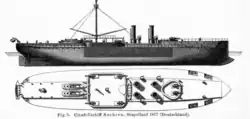 - ^ German warships were ordered under provisional names. Additions to the fleet were given a single letter; ships intended to replace older or lost vessels were ordered as "Ersatz (name of the ship to be replaced)".[9]