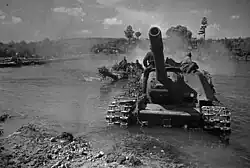 Towed guns were also vulnerable to counterattack while moving, especially since they were often hauled by horses or their crews. The 152 mm heavy howitzers were particularly difficult to maneuver owing to their great weight. They were incapable of crossing rivers on anything but tank bridges and were prone to being abandoned after becoming mired.