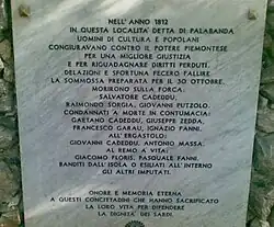 Plaque commemorating the 'Palabanda conspiracy' in Cagliari