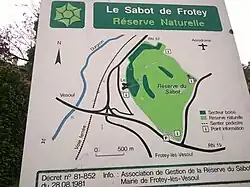 Sabot de Frotey National Nature Reserve is a national nature reserve located in Vesoul, France. It was created in 1981 over 98 hectares to protect the area from urbanisation by the nearby city of Vesoul. The reserve features at least 440 different flora species including 20 different species of orchid, 39 species of orthoptera and 500 species of butterflies. Since 2000, 30 hectares of the area was allocated for use as sheep pastures.[1]