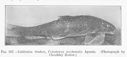 In 1973, John D. Hopkirk, ichthyologist and emeritus professor of Sonoma State wrote the species is an endemic fish to the Sacramento-San Joaquin province with several subspecies in the genus Catostomus. The subspecies includes Central Valley C. occidentalis occidentalis, Eel River C. occidentalis humboldtianusi, C. occidentalis lacusanserinus of Colombia River system, and C. occidentalis mniotilus of the Monterey Bay. Additional subspecies found in Clear Lake, Russian River, and Tomales Bay belong to Catostomus occidentalis.[7] Over a decade later, in 1987, California Fish and Game or, as it is recognized today, the California Fish and Wildlife determined morphological differentiation of subspecies within the Catostomus occidentalis species. It was determined subspecies populations by region do not remarkably differ except for recognized Pajaro sucker (C. o. mniotilus)[8] The Pajaro sucker show differences in lateral line scales, scales from the lateral line, and scale rows before the dorsal compared to other relatives.[8] Outside of the Catostomus genus, the Sacramento Sucker possesses similar morphological characteristics of lateral genital pores with the family Lissorchidae as well as the genus Triaganodistomum for shape of ovary.[9]