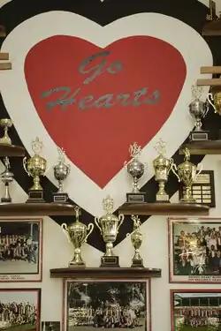 Participants can take part in active sports like swimming and basketball, cricket and football, as well as movies and excursions. Peter Cullen, then a seminarian, initiated the sports program in the early 1990s and ran it without funding for a number of years.[4]: 58 These days the sporting teams from the Mission play in competitions organised by RecLink. The football team, The Hearts, draws enthusiastic support from the local community.[27] Sacred Heart Mission is a charity partner of the St Kilda Football Club and players sometimes attend The Hearts' training sessions.